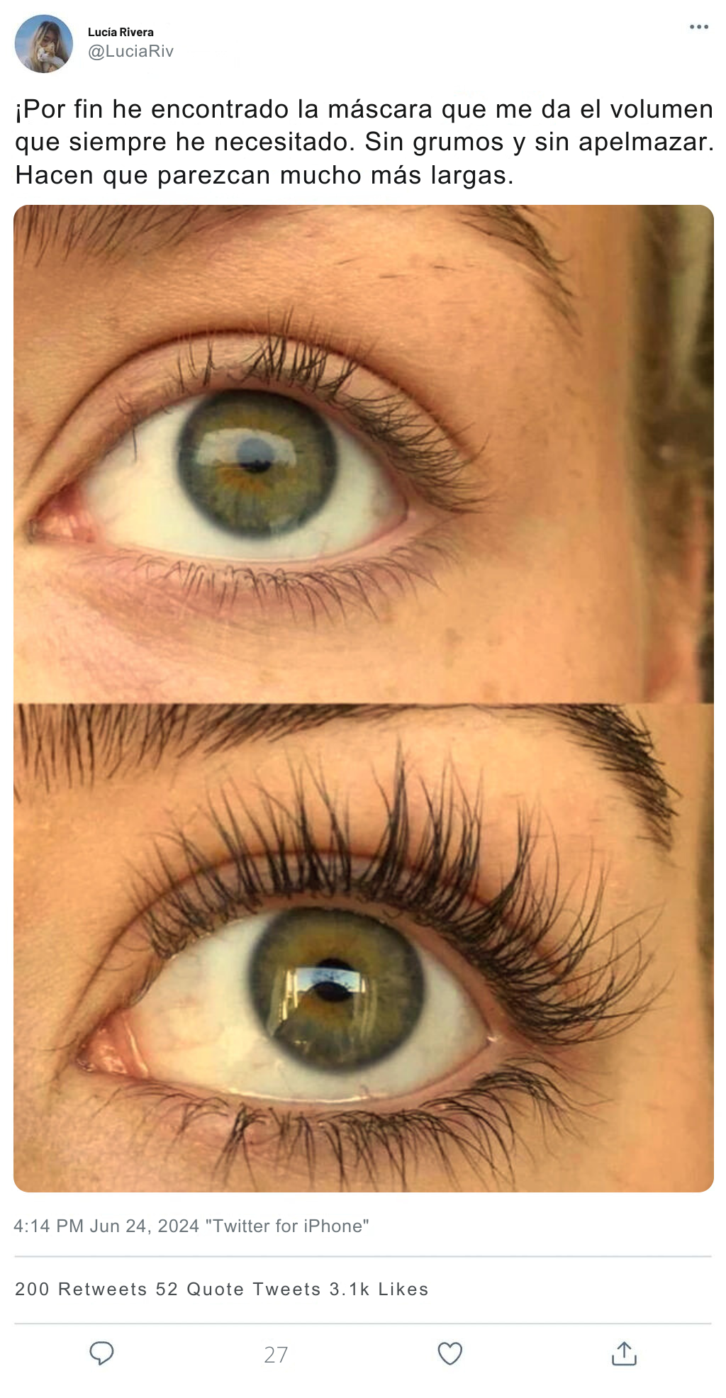 Nuestra máscara está diseñada pensando en mujeres como tú. Te ayudamos a lograr pestañas más largas, con volumen y relucientes, sin comprometer la salud de tus pestañas. ¡Siéntete segura y hermosa a cualquier edad!